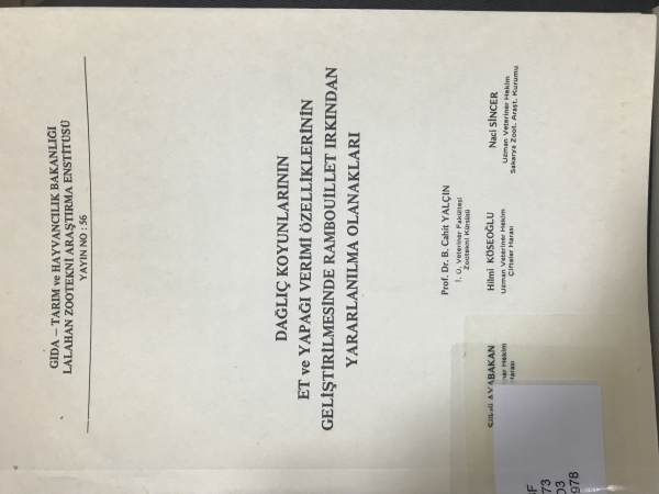 Dağlıç koyunlarının et ve yapağı verimi özelliklerinin geliştirilmesinde rambouillet ırkından yararlanma / B. Cahit Yalçın [and others]
