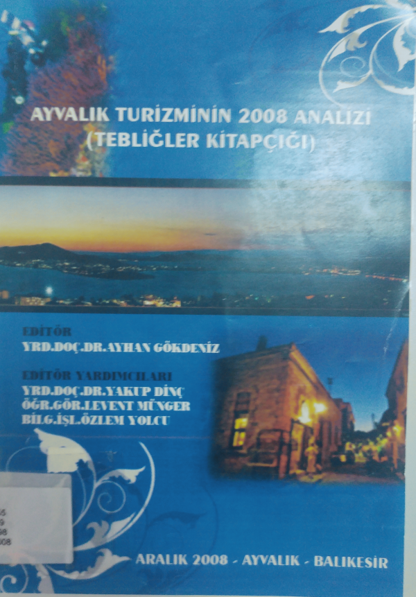 Ayvalık turizminin 2008 analizi : tebliğler kitapçığı: Aralık 2008 Ayvalık, Balıkesir / editör, Ayhan Gökdeniz ; editör yardımcıları, Yakup Dinç, Levent Münger, Özlem Yolcu.