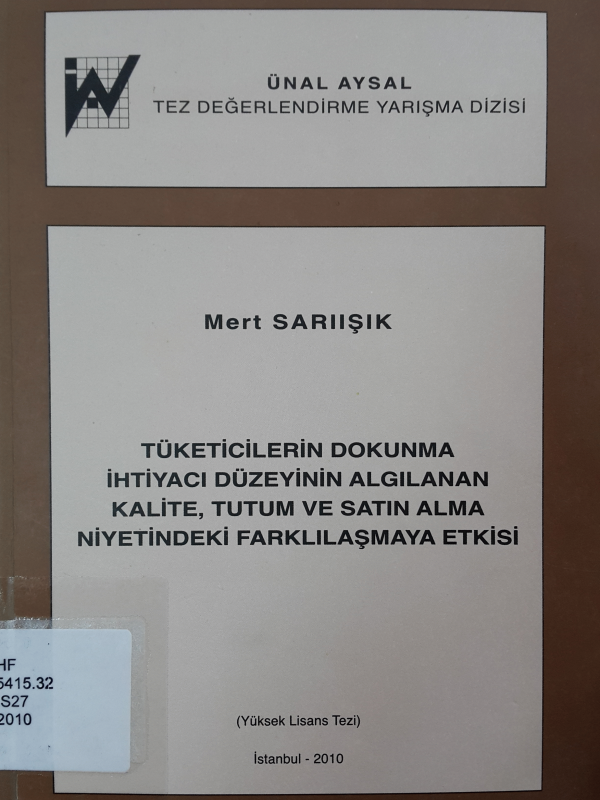 Tüketicilerin dokunma ihtiyacı düzeyinin algılanan kalite, tutum ve satın alma niyetindeki farklılaşmaya etkisi / Mert Sarıışık.