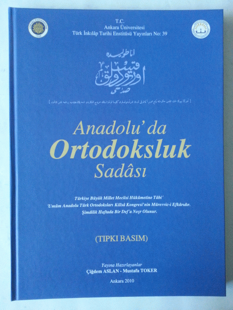 Anadolu'da ortodoksluk sadası : Türkiye büyük meclis hükümetine tabi umum Anadolu Türk ortodoksları kilisa kongresi'nin mürevvic-i efrakıdır / yayına hazırlayanlar, Çiğdem Aslan, Mustafa Toker.