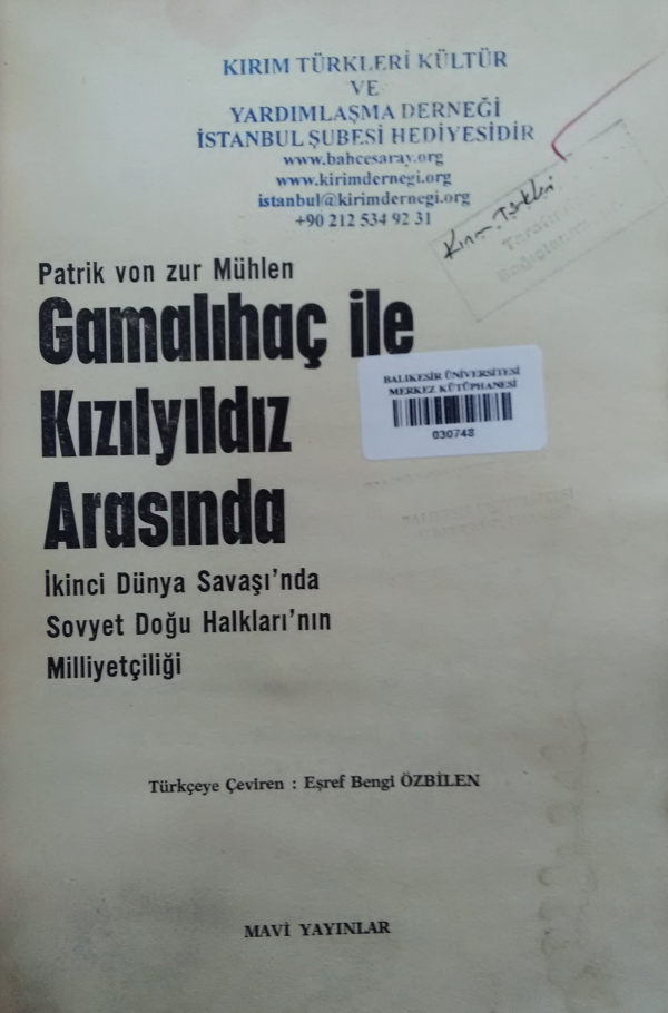 Gamalıhaç ile kızılyıldız arasında : ikinci dünya savaşında Sovyet doğu halkları'nın milliyetçiliği / Patrik von zür Mühlen ; Türkçeye çeviren Eşref Bengi Özbilen.