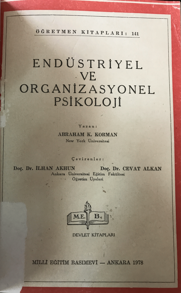 Endüstriyel ve organizasyonel psikoloji / Abraham K. Korman; çevirenler İlhan Akhun, Cevat Alkan.