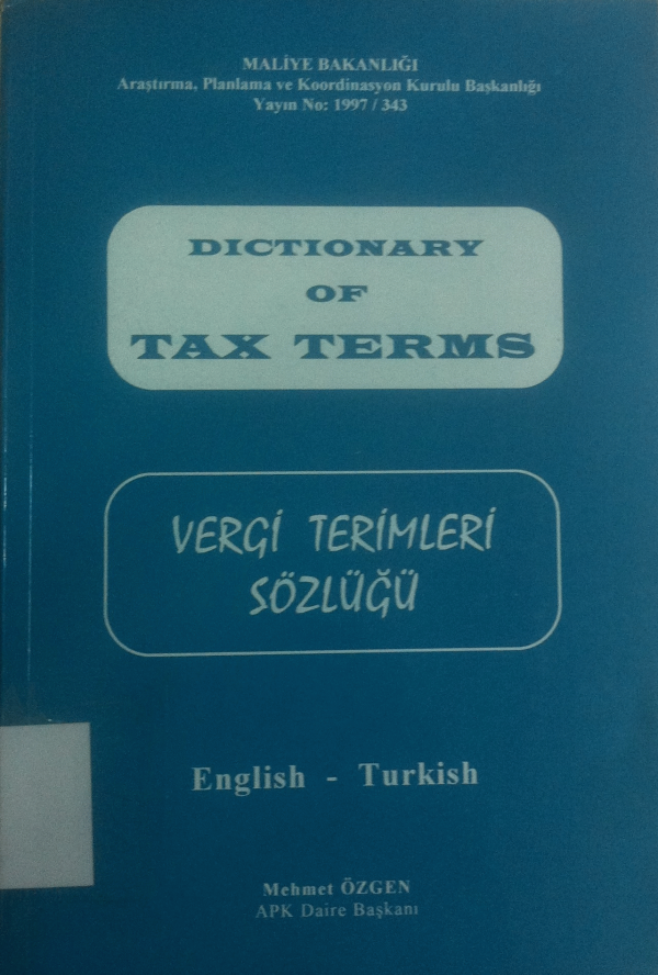 Dictionary of tax terms = Vergi terimleri sözlüğü : English - Turkish / [edition] Mehmet Özgen.