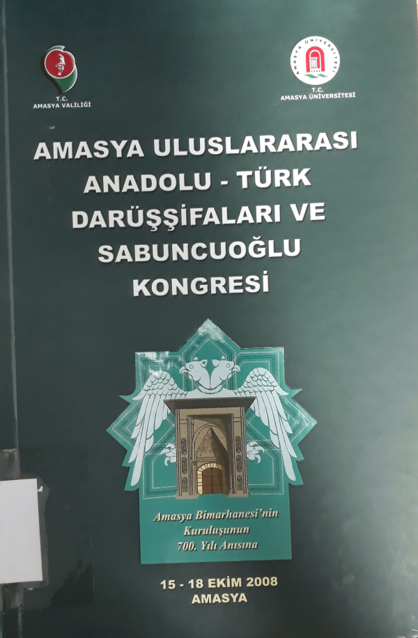 Amasya uluslararası Anadolu-Türk darüşşifaları ve Sabuncuoğlu Kongresi, 15-18 Ekim 2008, Amasya : Amasya Bimarhanesi'nin kuruluşunun 700. yılı anısına / Yayına hazırlayanlar : Selim Kadıoğlu, Funda Gülay Kadıoğlu, İlter Uzel.