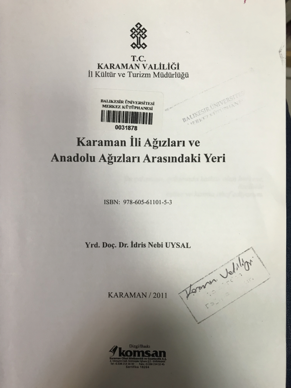 Karaman ili ağızları ve anadolu ağızları arasındaki yeri / İdris Nebi Uysal.