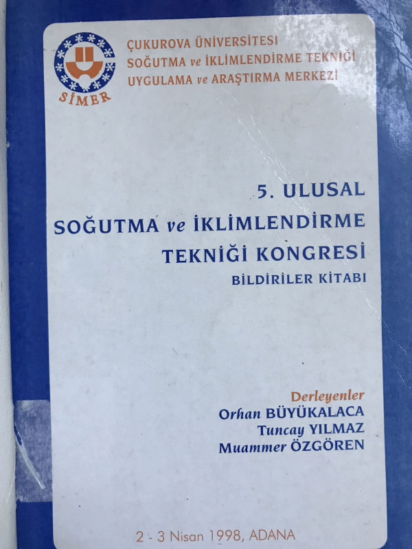 5. Ulusal Soğutma ve İklimlendirme Kongresi : bildiri kitabı, 2-3 Nisan 1998 Çukurova Üniversitesi, Adana / editör Orhan Büyükalaca, Tuncay Yılmaz, Muammer Özgören.
