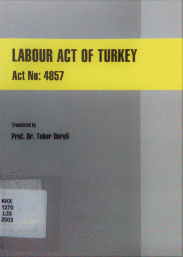 Labour act of Turkey : act no:4857 / çeviren, Toker Dereli.