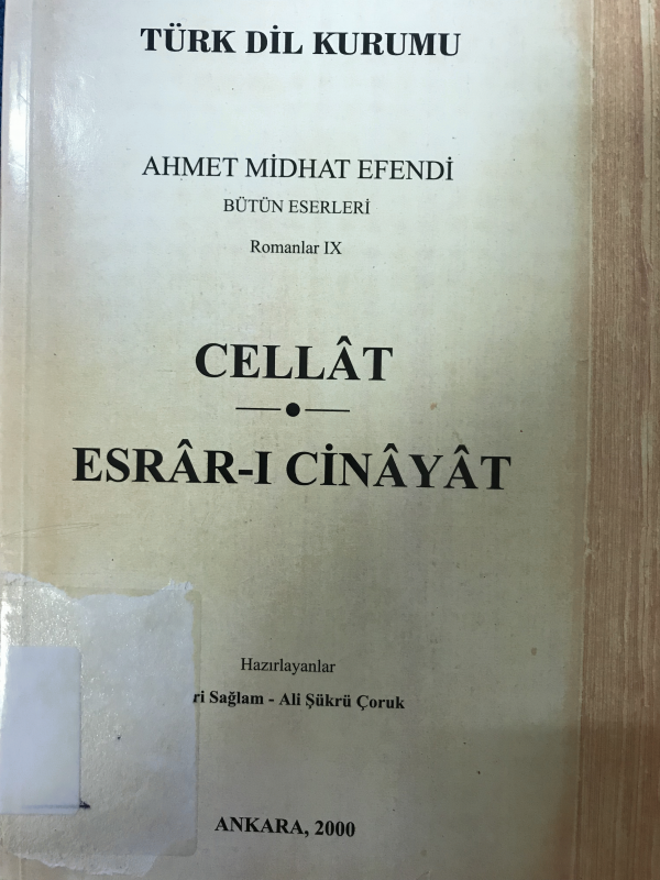 Cellat : Esrâr-ı cinâyât / Ahmet Mithat Efendi hazırlayanlar Nuri Sağlam, Ali Şükrü Çoruk.
