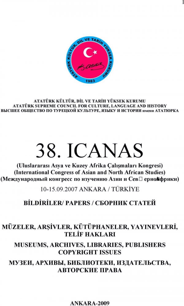 - Otuzsekizinci ICANAS (Uluslararası Asya ve Kuzey Afrika Çalışmaları Kongresi) 10-15 Eylül 2007 : bildiriler : Müzeler, arşivler, kütüphaneler, yayınevleri, telif hakları