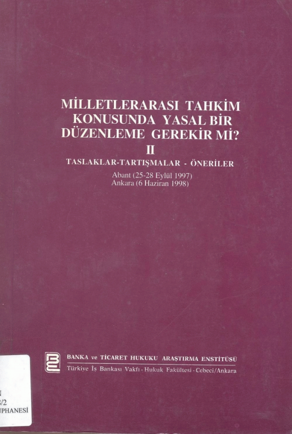 Milletlerarası tahkim konusunda yasal bir düzenleme gerekir mi II: taslaklar-tartışmalar-öneriler, Abant (25-28 Eylül 1997), Ankara (6 Haziran 1998)/ yayına hazırlayan Selçuk Veziroğlu.