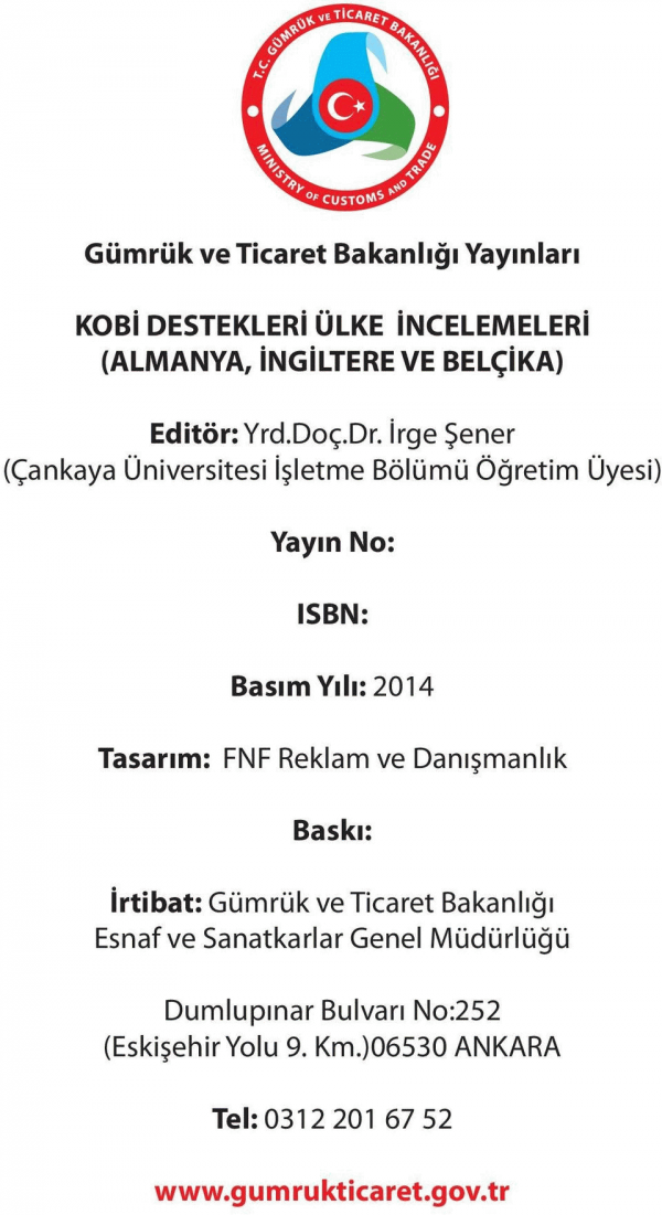 KOBİ destekleri ülke incelemeleri : (Almanya, İngiltere ve Belçika) / editör İrge Şener.