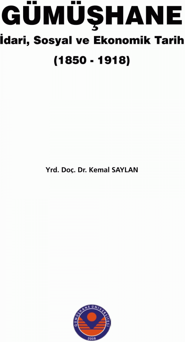 Gümüşhane : idari, sosyal ve ekonomik tarih : (1850-1918) / Yrd. Doç. Dr. Kemal Saylan.