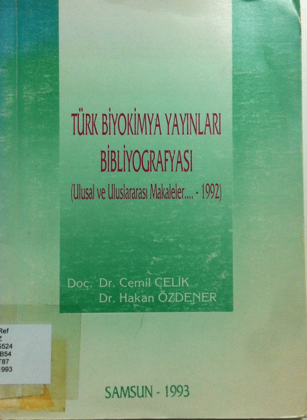 Türk biyokimya yayınları bibliyografyası : (ulusal ve uluslararası makaleler...-1992) / hazırlayanlar Cemil Çelik, Hakan Özdener.