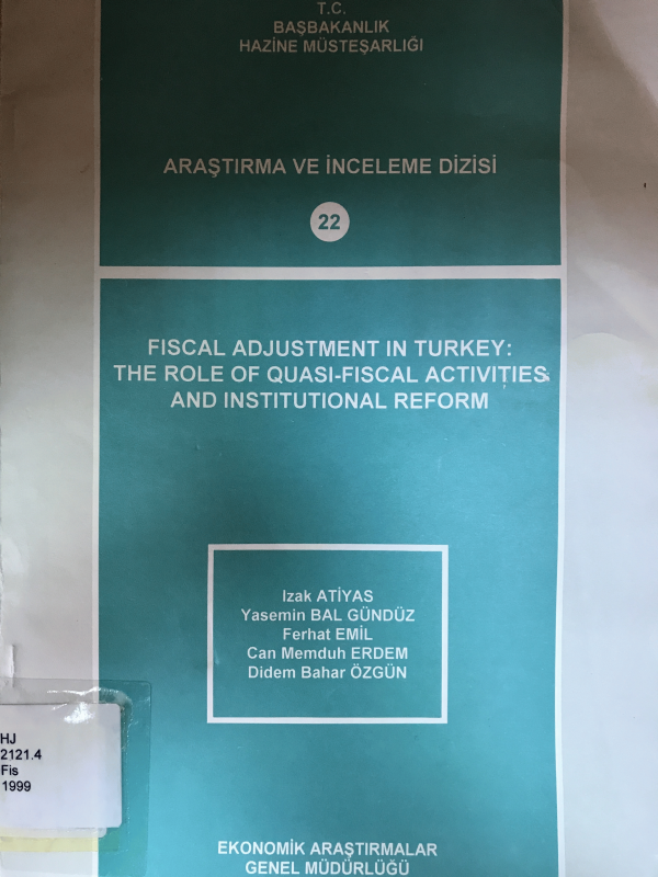 Fiscal adjustment in Turkey : the role of quasi-fiscal activities and institutional reform / Izak Atiyas...[and others].