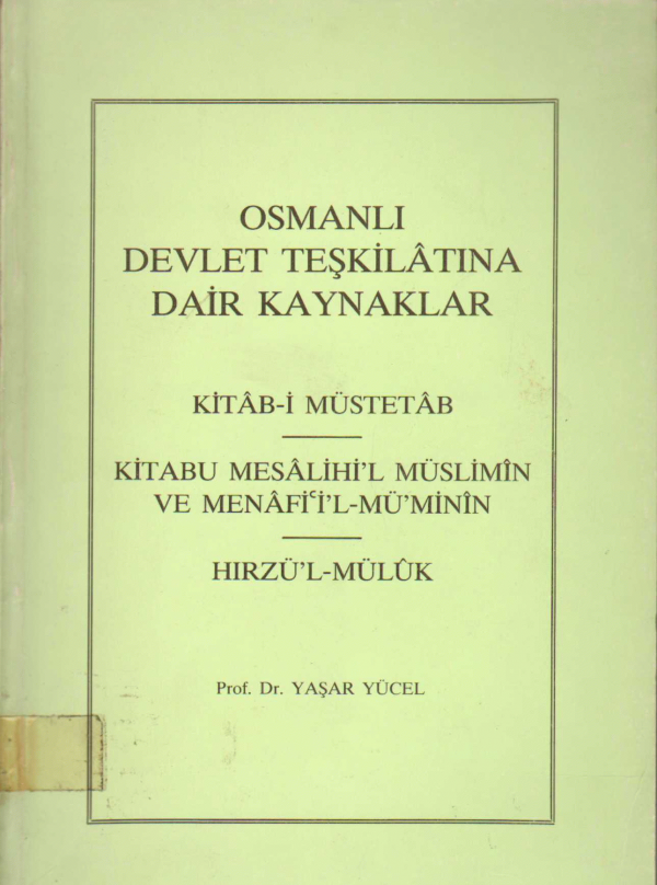 Kitâb-i müstetâb -- Kitabu mesâlihil müslimîn ve menâfiil-müminîn -- Hirzül-mülûk.