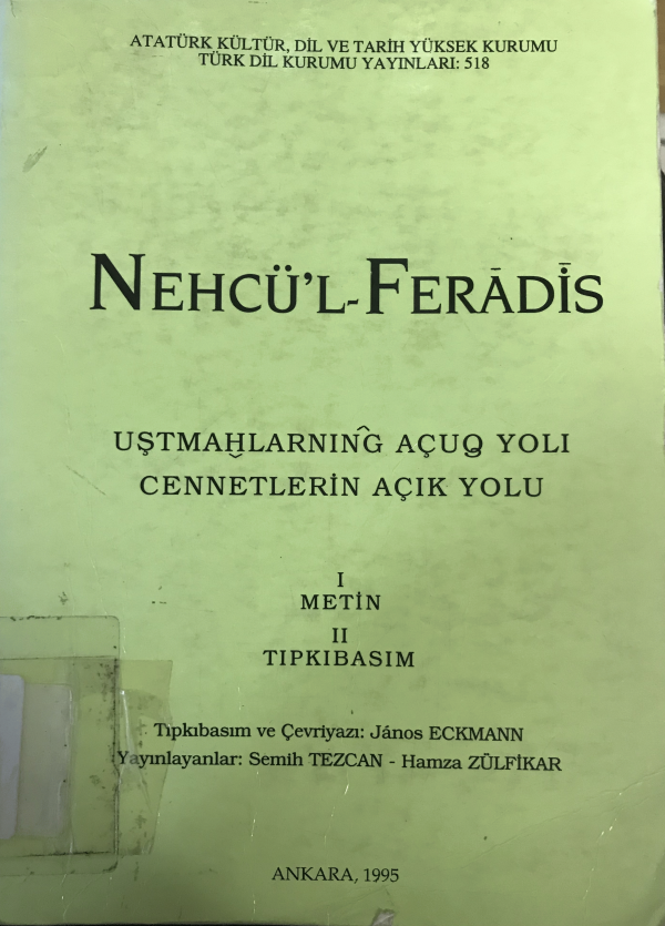 Nehcül-feradis = Uşmahlarnıng açuq yolı = Cennetlerin açık yolu / tıpkıbasım ve çevriyazı, János Eckmann ; yayımlayanlar Semih Tezcan, Hamza Zülfikar.