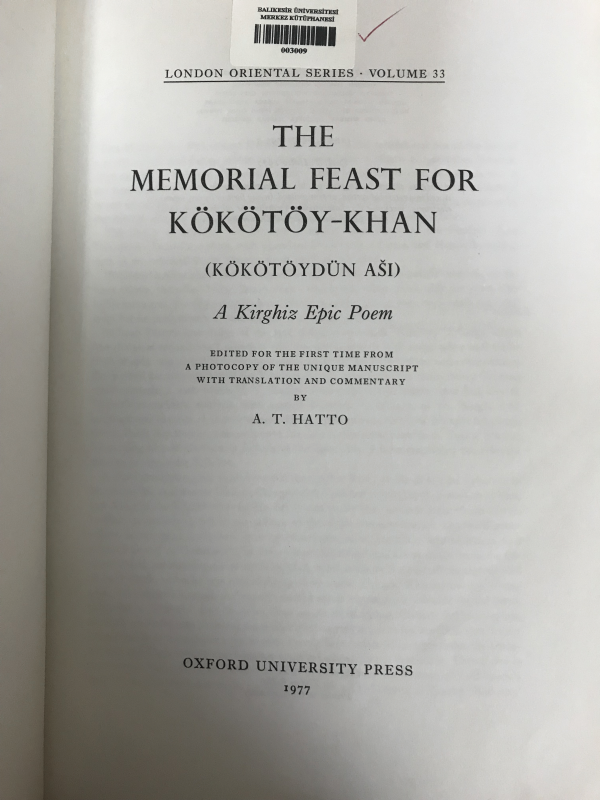Dil: Türkçe, İngilizce, Kırgızca Özgün dil:İngilizce, Kırgızca Seri kaydı: Türk Dil Kurumu yayınları ; 625Yayıncı: Ankara : Atatürk Kültür, Dil ve Tarih Yüksek Kurumu, 1995Tanım: xvi, 294 pages ; 24 cmKonu(lar): LOC sınıflandırması:- PL65.K59 B69 1995