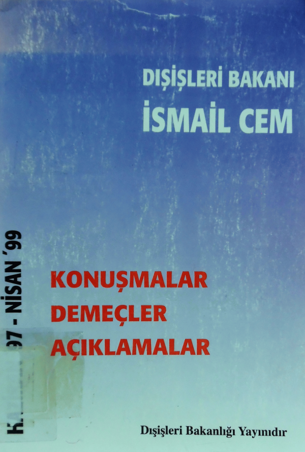 Dışişleri Bakanı İsmail Cem : konuşmalar, demeçler, açıklamalar : Haziran'97-Nisan'99 / İsmail Cem.