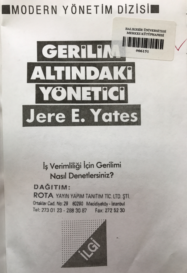 Gerilim altındaki yönetici : İş verimliliği için gerilimi nasıl denetlersiniz?/ Jere E. Yates ; Türkçesi Fatoş Dilber