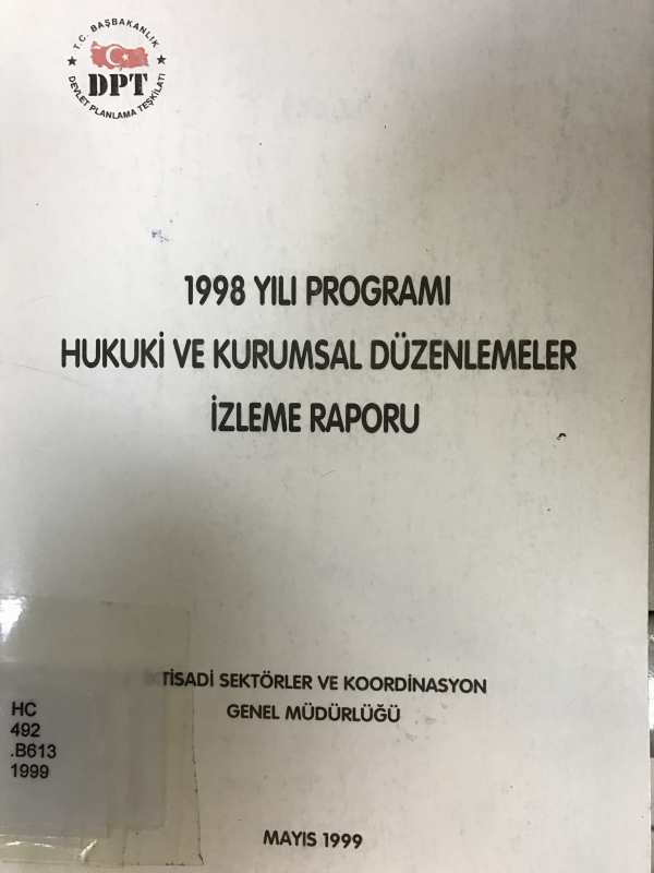1998 yılı programı hukuki ve kurumsal düzenlemeler izleme raporu.