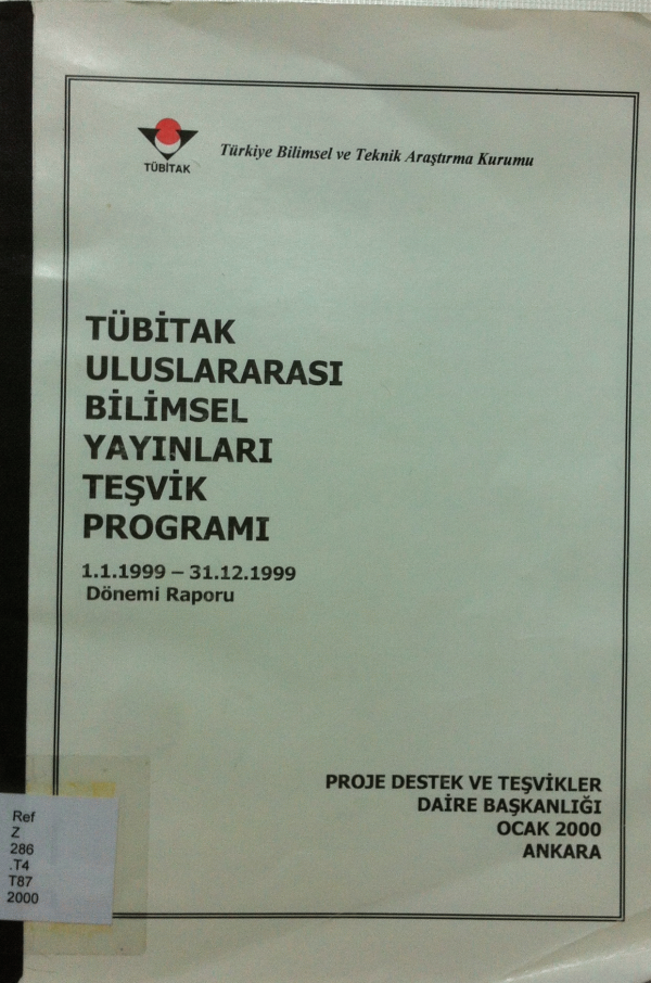TÜBİTAK Uluslararası bilimsel yayınları teşvik programı: 1.1.1999-31.12.1999 dönemi raporu/ Proje Destek ve Teşvikler Daire Başkanlığı.