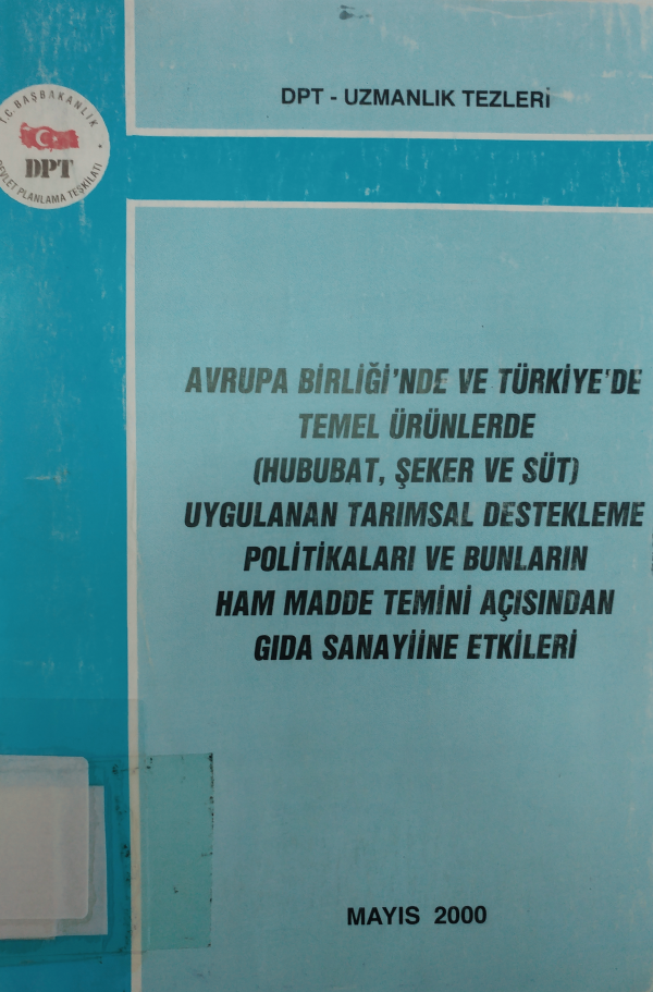 Avrupa Birliği'nde ve Türkiye'de temel ürünlerde (hububat,şeker ve süt) uygulanan tarımsal destekleme politikaları ve bunların ham madde temini açısından gıda sanayiine etkileri / Taylan Kıymaz