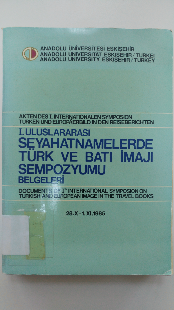 I. Uluslararası Seyahatnamelerde Türk ve Batı İmajı Sempozyumu belgeleri : 28. X-1 XI. 1985.