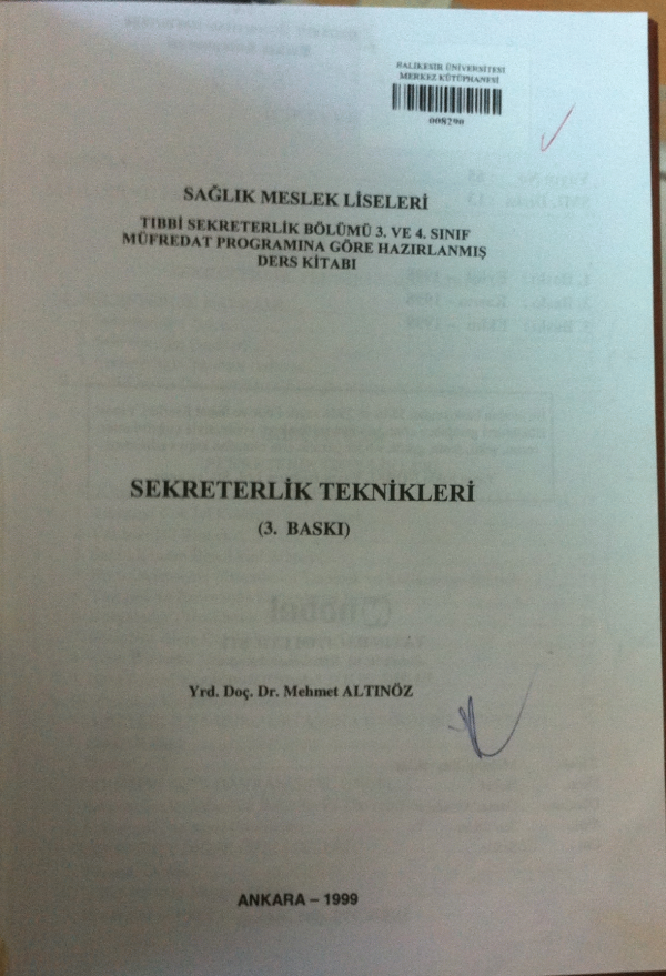 Sekreterlik teknikleri / Mehmet Altınöz.