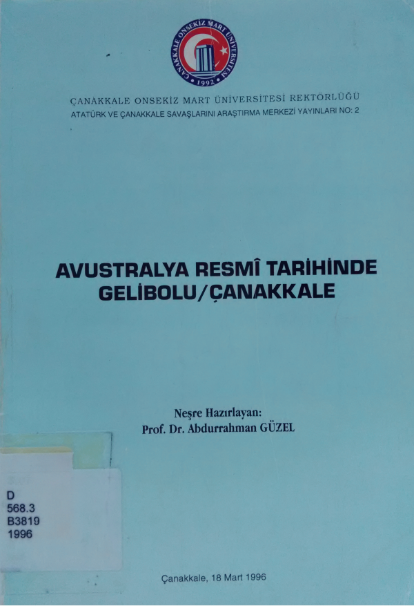 Avustralya resmi tarihinde Gelibolu/Çanakkale : Fotoğraflarla savaş'ın Gelibolu cephesi / fotoğraf altlarını yazanlar C. E. W. Bean, H. S. Gullett ; neşre hazırlayan Abdurrahman Güzel.
