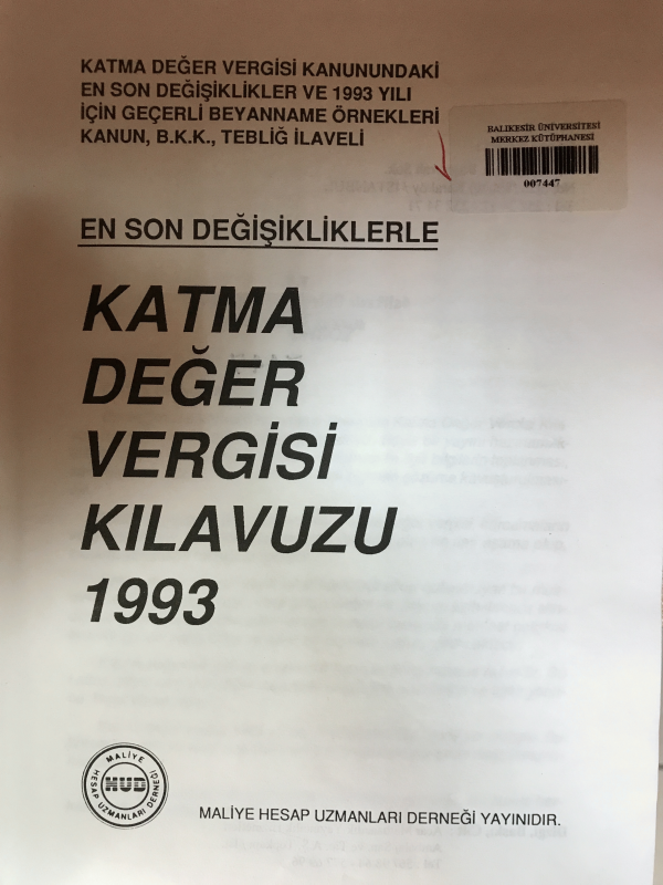 Katma değer vergisi kılavuzu: Katma değer vergisi kanunundaki en son değişiklikler ve 1993 yılı için geçerli beyanname örnekleri kanun, B.K.K., tebliğ ilaveli.