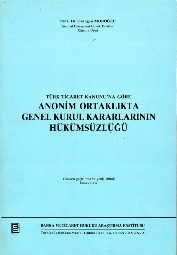 Türk Ticaret Kanunu'na göre anonim ortaklıkta genel kurul kararlarının hükümsüzlüğü / Erdoğan Moroğlu.