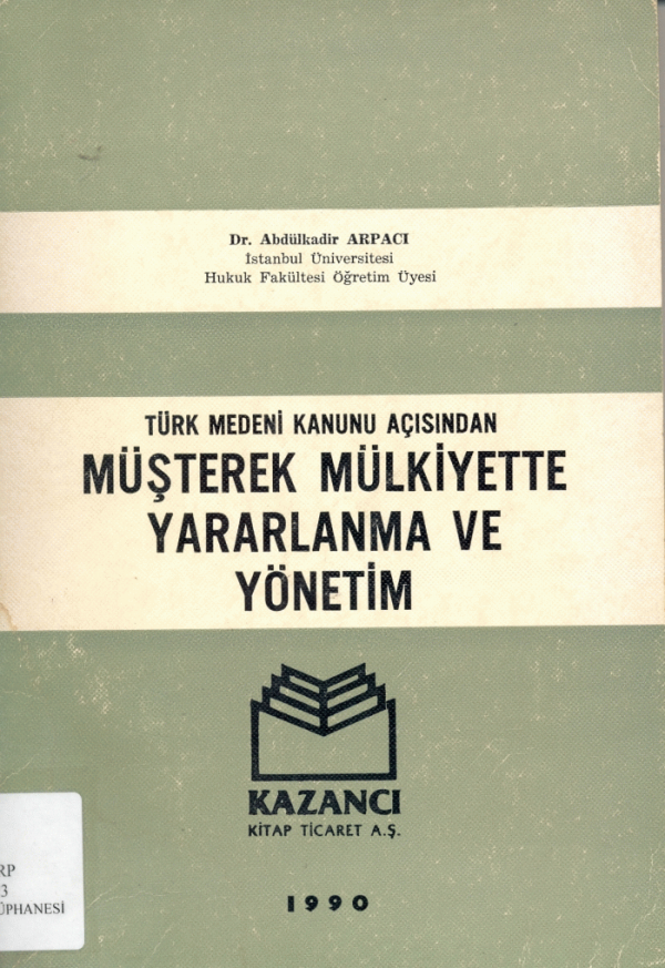 Türk medeni kanunu açısından müşterek mülkiyette yararlanma ve yönetim / Dr. Abdülkadir Arpacı