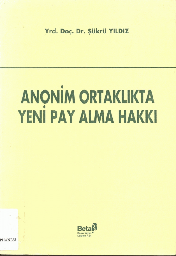 Anonim ortaklıkta yeni pay alma hakkı / Şükrü Yıldız