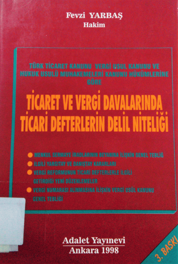 Ticaret vergi davalarında ticari defterlerin delil niteliği / Fevzi Yarbaş.