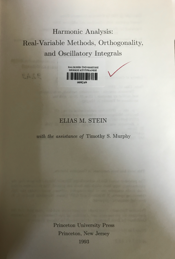 Harmonic analysis:real-variable methods,orthogonality and oscillatory integrals / Elias M. Stein, with the assistance of Timothy S. Murphy.