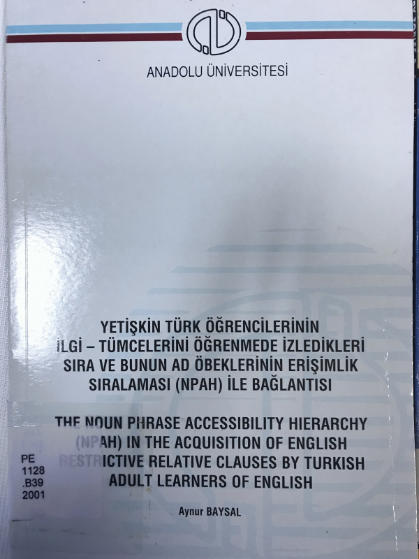 Yetişkin Türk öğrencilerinin ilgi-tümcelerini öğrenmede izledikleri sıra ve bunun ad öbeklerinin erişimlik sıralamasi (NPAH) ile bağlantisi = The noun phrase accessibility hierarchy (NPAH) in the acquistion of English restrictive relative clauses by Turkish adult learners of English / Aynur Baysal.