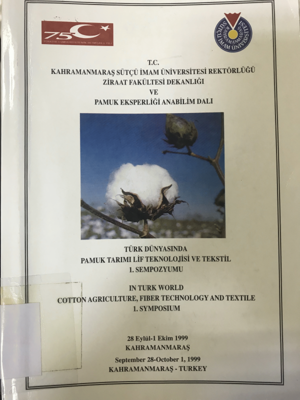 Türk dünyasında pamuk tarımı lif teknolojisi ve tekstil 1. sempozyumu, 28 Eylül-1 Ekim 1999 = In Turk world cotton agriculture, fiber technology and textile 1. symposium, September 28-October 1, 1999 / Kahramanmaraş Sütçü İmam Üniversitesi Rektörlüğü.