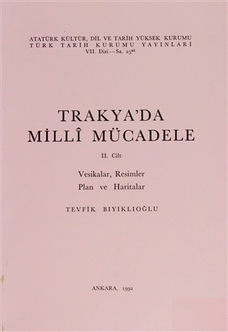 volume1. Trakya'da milli mücadele. volume 2. Vesikalar, resimler, plan ve haritalar.