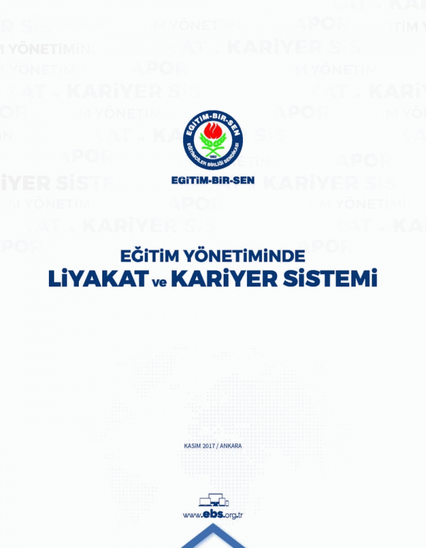 İÇİNDEKİLER TAKDİM 3 SUNUŞ 5 GİRİŞ 9 Liyakat ve Kariyer 14 Liyakat 14 Kariyer 18 örgütsel Adalet 18 Eğitim Yönetimi 20 Eğitim Yönetiminde Sistem Arayışı 22 Eğitim-Bir-Sen’in Tutumu 29 Eğitim Liderlerinin Nitelikleri 33 Eğitim Yönetiminde Dünya Örnekleri 42 Sözlü Sınav (Mülakat) 47 SONUÇ 51 Sonuç ve Öneriler 53 KAYNAKLAR 61