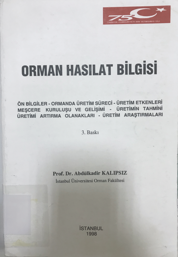 Orman hasılat bilgisi: ön bilgiler-ormanda üretim süreci-üretim etkenleri,meşcere kuruluşu ve gelişimi-üretim tahmini-üretim artırma olanakları-üretim araştırmaları / Abdülkadir Kalıpsız