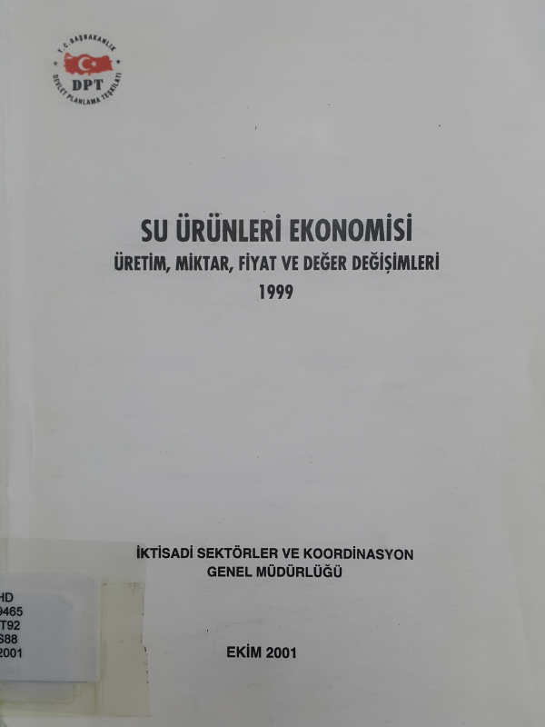 Su ürünleri ekonomisi: üretim,miktar,fiyat ve değer değişimleri 1999/ hazırlayan Selçuk Erbaş [and others].
