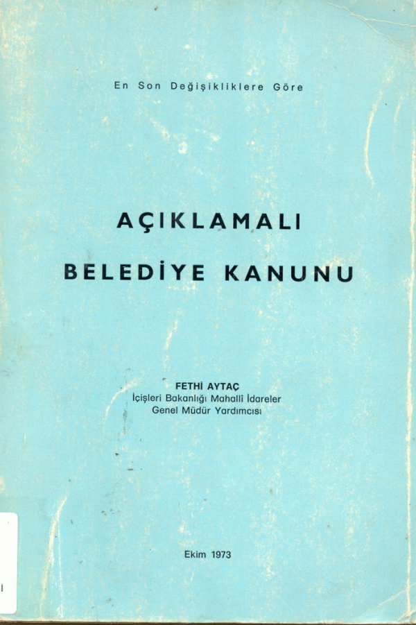 Son değişikliklere göre, belediye seçim mevzuatı dahil açıklamalı belediye kanunu / [hazl.]Fethi Aytaç.