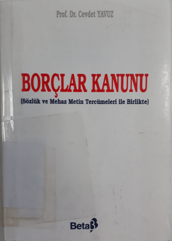 Borçlar kanunu: (sözlük ve mehaz metin tercümeleri ile birlikte)/ Cevdet Yavuz.