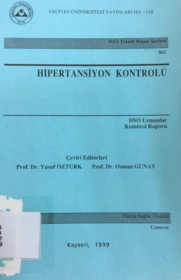 Hipertansiyon kontrolü: DSÖ uzmanlar komitesi raporu/ çeviren Yusuf Öztürk,Osman Günay.