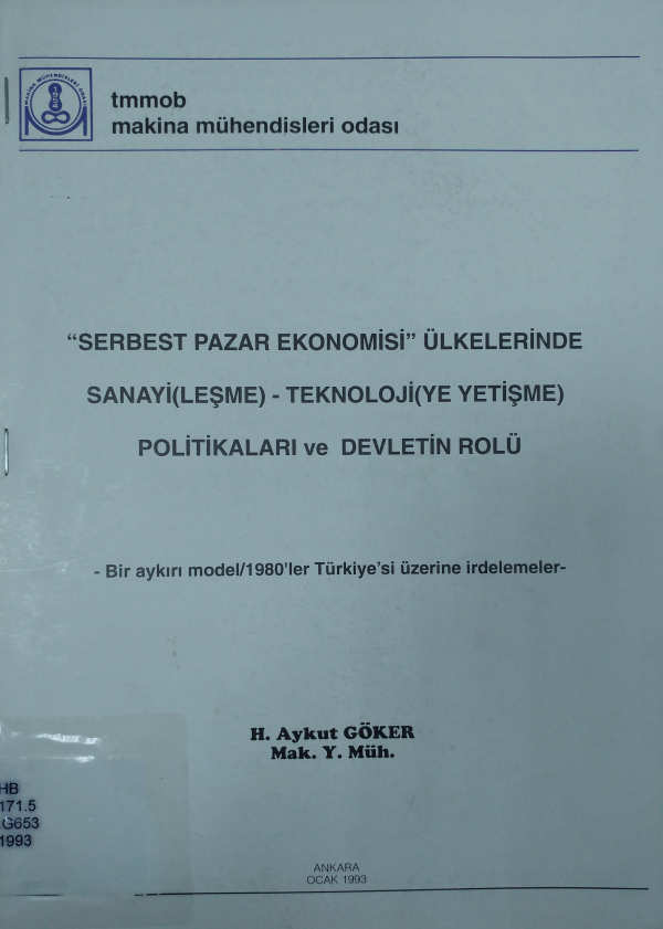 Serbest pazar ekonomisi ülkelerinde sanayi(leşme)-teknoloji(ye yetişme) politikaları ve devletin rolü : bir aykırı model/1980'ler Türkiye'si üzerine bir inceleme / Aykut Göker