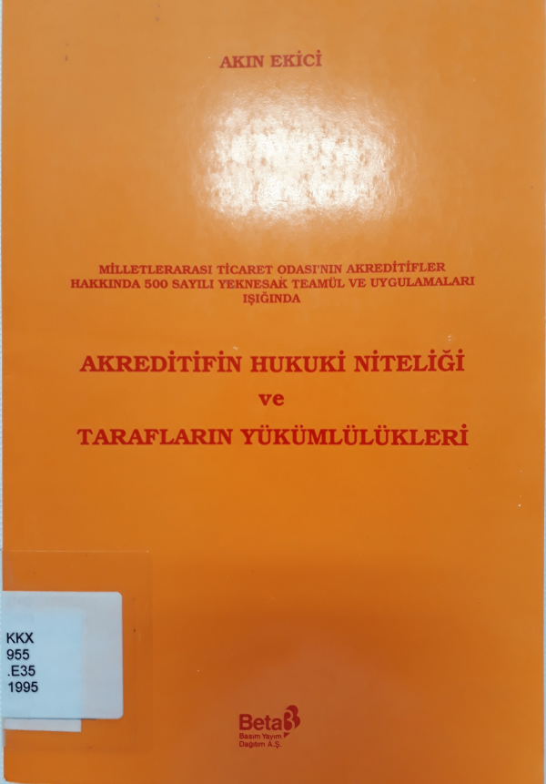 Milletlerarası ticaret odasının akreditifler hakkında 500 sayılı yeknesak teamül ve uygulamaları ışığında akreditifin hukuki niteliği ve tarafların yükümlülükleri / Akın Ekici.