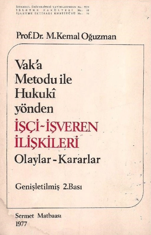 Vak'a metodu ile hukuki yönden işçi-işveren ilişkileri : Olaylar-kararlar / Prof. Dr. M. Kemal Oğuzman.