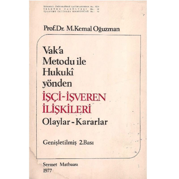 Vak'a metodu ile hukuki yönden işçi-işveren ilişkileri : Olaylar-kararlar / Prof. Dr. M. Kemal Oğuzman.
