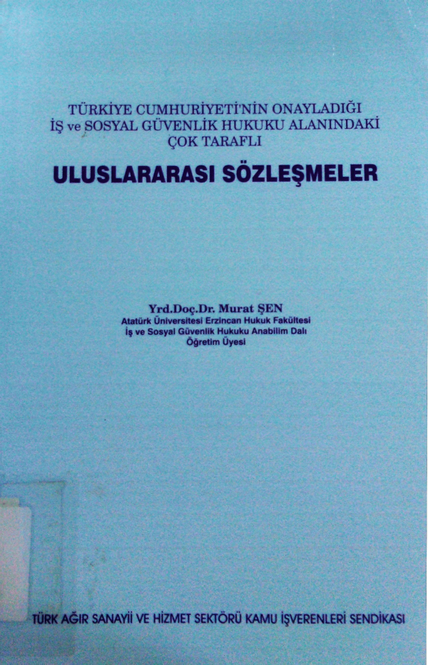 Türkiye Cumhuriyeti'nin onayladığı iş ve sosyal güvenlik hukuku alanındaki çok taraflı uluslararası sözleşmeler/ / Murat Şen; yayına hazırlayan Ali Rıza Arslan.